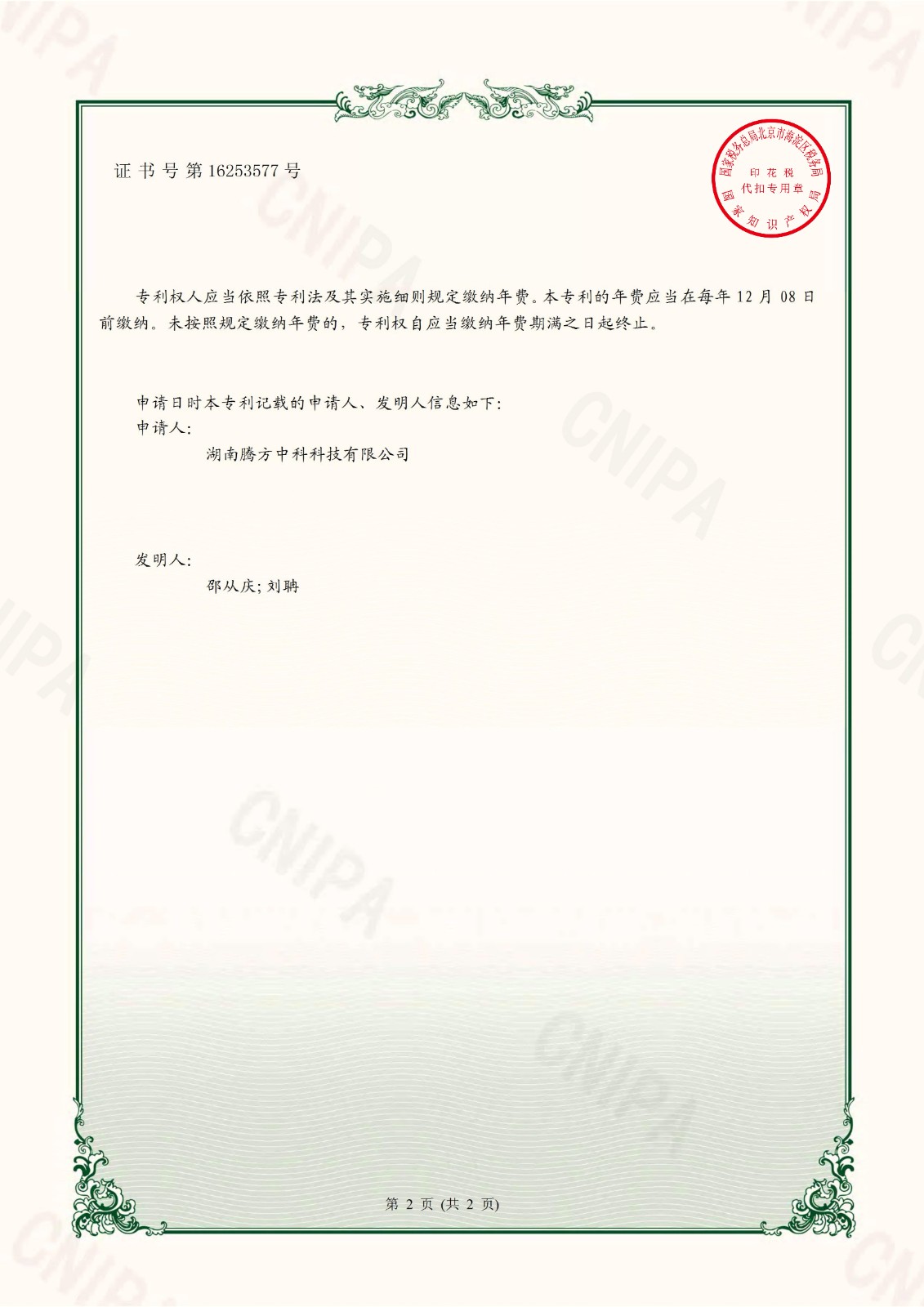 Patent certificate for a high-density data linker